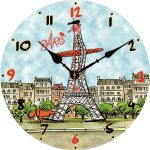 Originale et amusante, cette horloge murale de cuisine vous rappellera que Paris est sans aucun doute la plus belle ville au monde. Tenant une baguette dans son bras gauche, vous apercevrez sur le cadran la tête d’un Français au-dessus de la Tour Eiffel marchant avec son chien dans la rue.