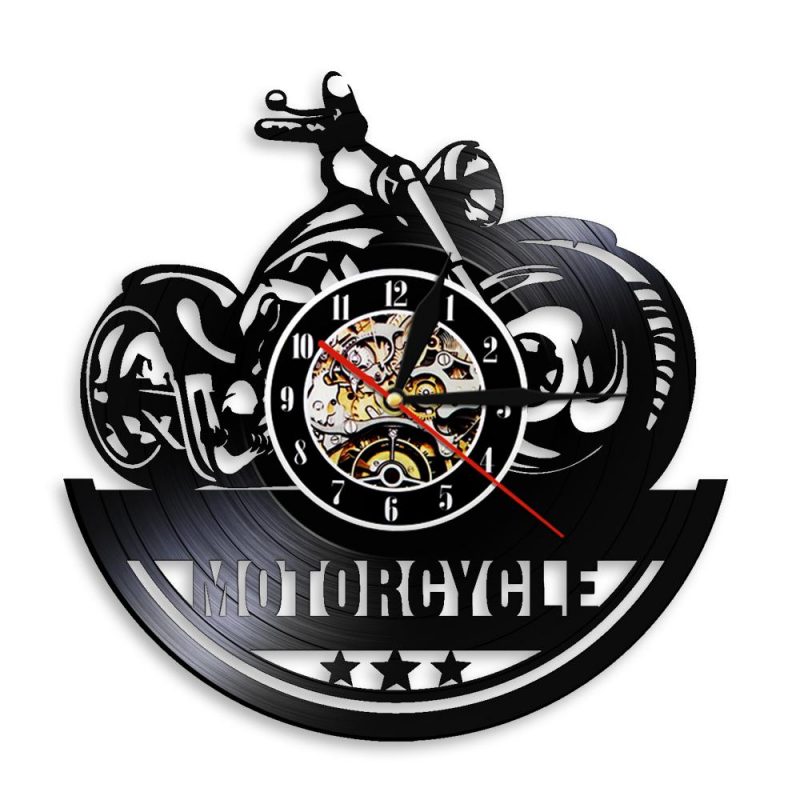 Soyez un Biker de haut niveau et procurez vous cette incroyable horloge murale en vinyle. Elle représente une Moto Custom de couleur noire mise de profil. Son look et son style vintage donneront du cachet à votre décoration murale