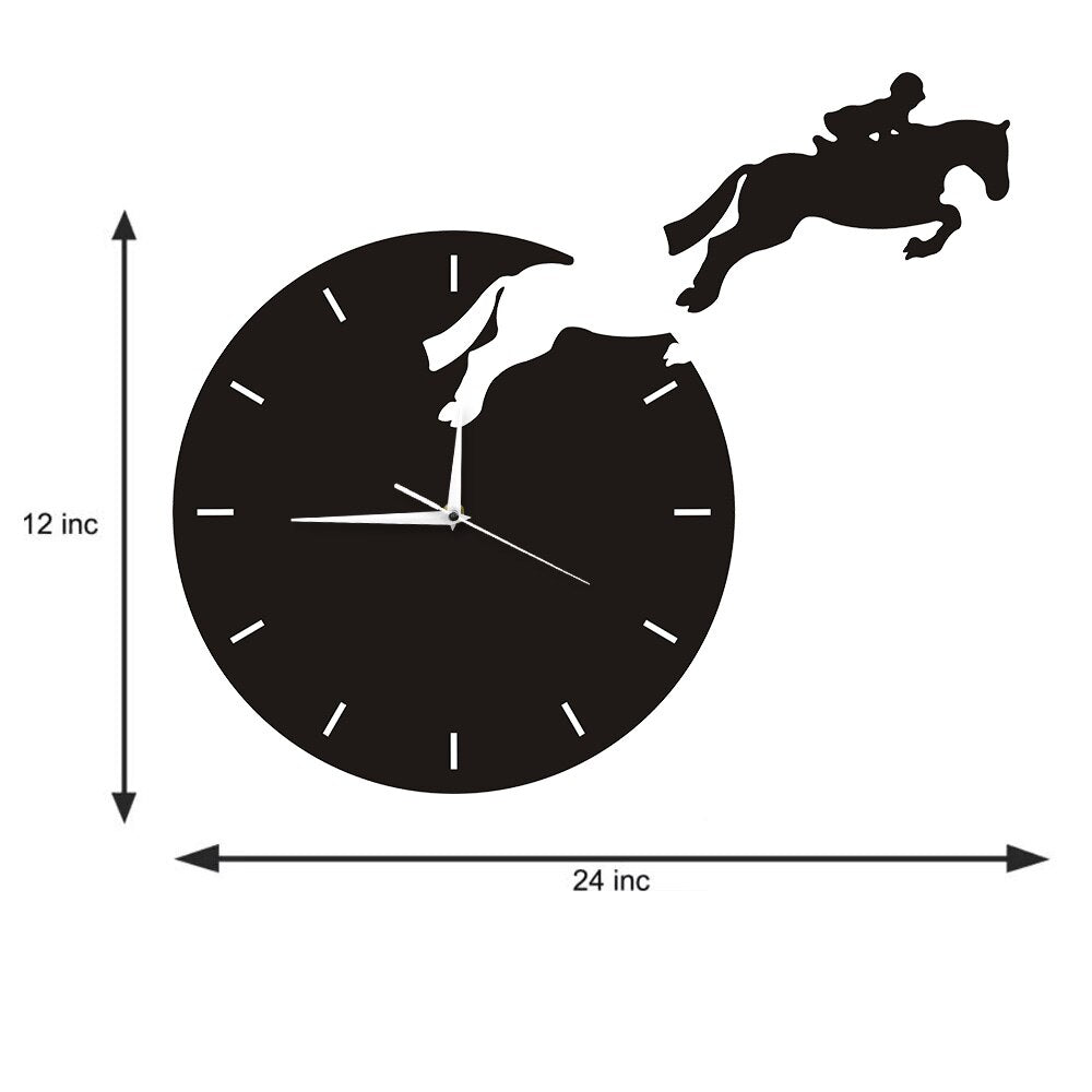 Vous adorez les chevaux de course ? Ou peut-être, vous voulez devenir un cavalier hors-pair ? Alors n’attendez plus et installez cette horloge murale originale qui représente un jockey assis sur son cheval en train de faire le grand saut.